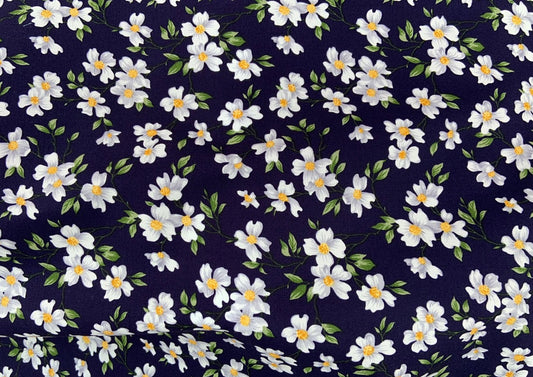 White flowers on navy, 100% cotton print