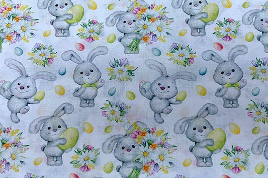 Cute bunnies Easter print on white background, 100% cotton print
